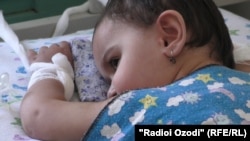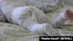 Девочка лежит в ожоговом отделении городской клинической больницы №3 Душанбе. Врачам приходится привязывать руки 1,5-годовалой Сумаи к больничной койке, потому что ребенок может расчесать раны до крови.